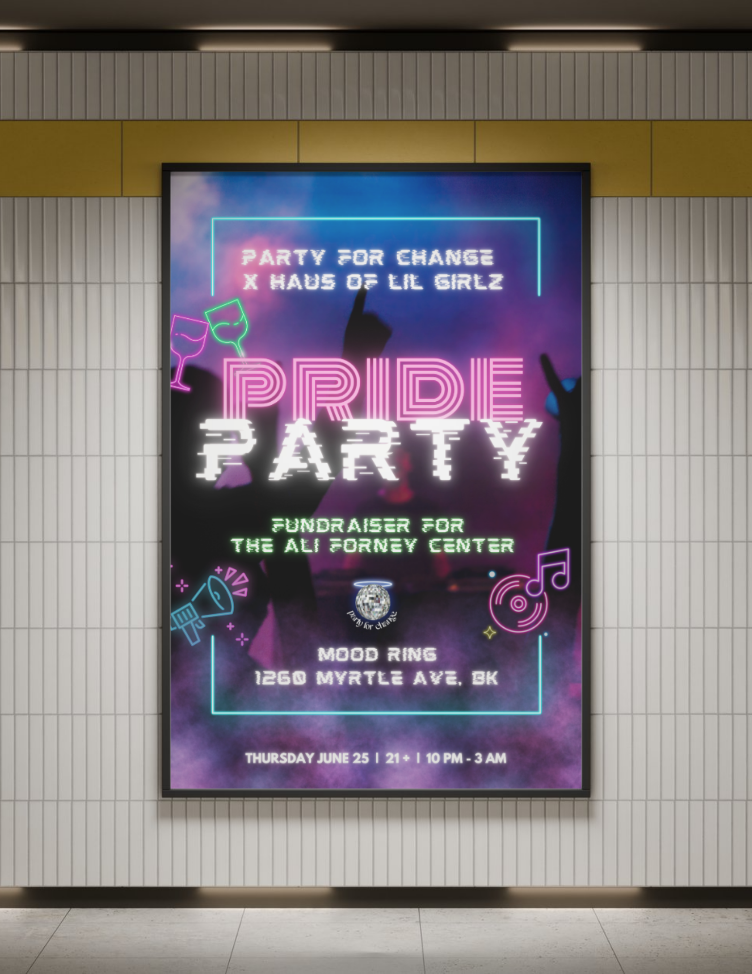 Celebrate Pride with Party For Change, Mood Ring, and Haus of Lil Girlz. This incredible collective of DJs will be playing all night. Come alone or bring all your friends — let’s show up and celebrate liberation, visibility, equality, and expression— all while raising money for The Ali Forney Center.