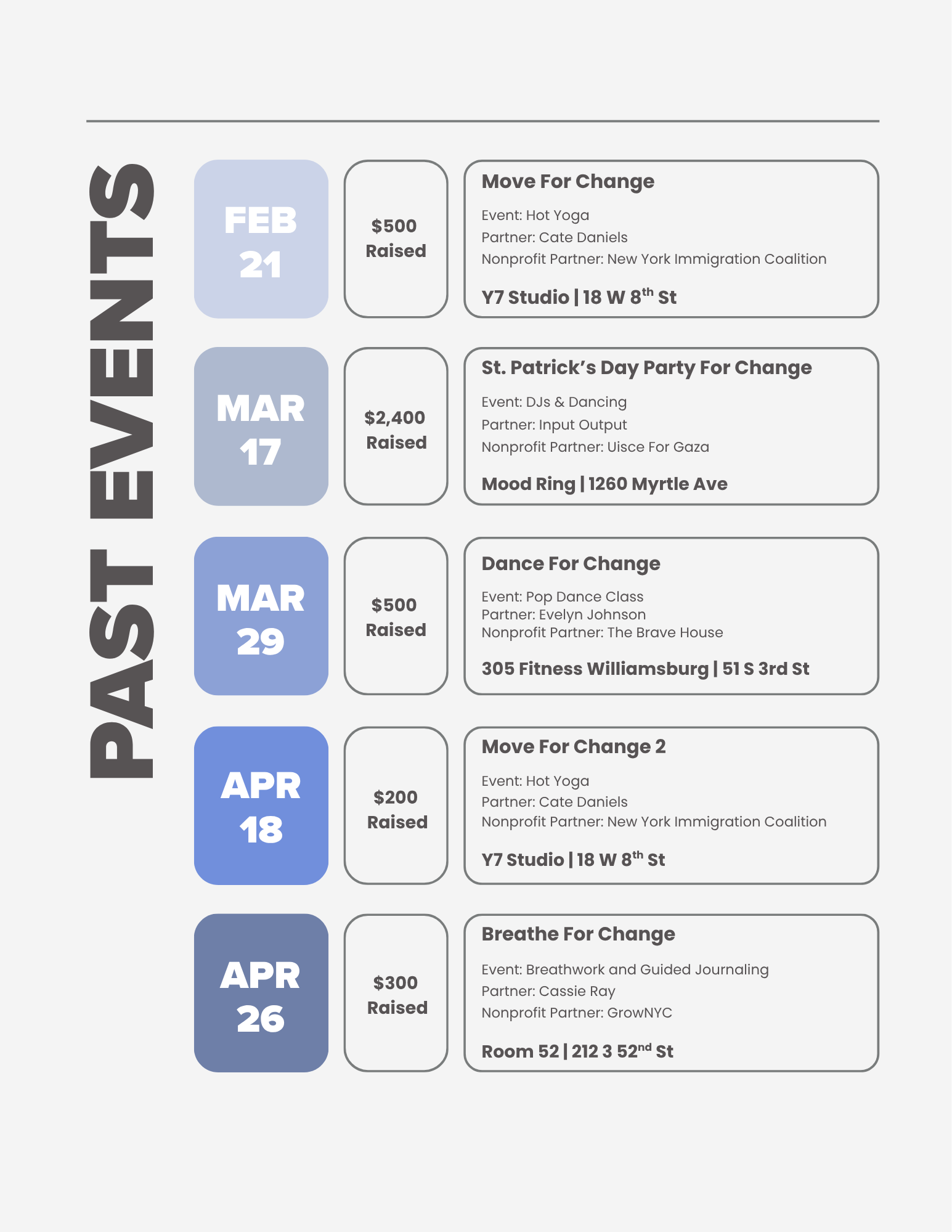 So far, Party for Change has raised almost $4,000 for our Non-Profit Partners.